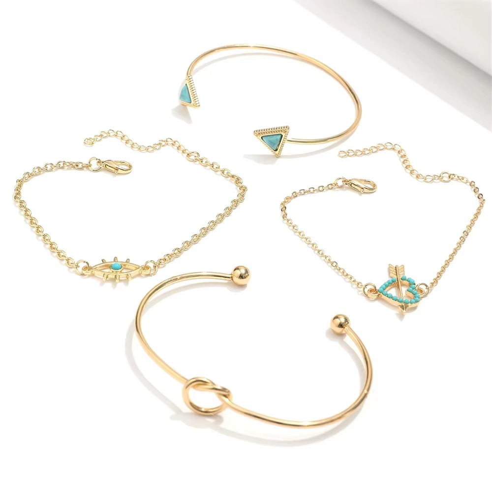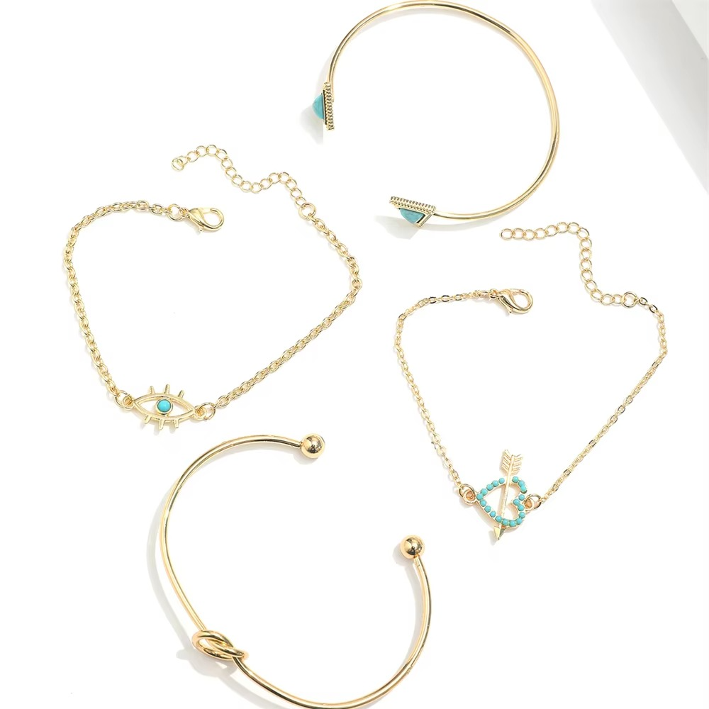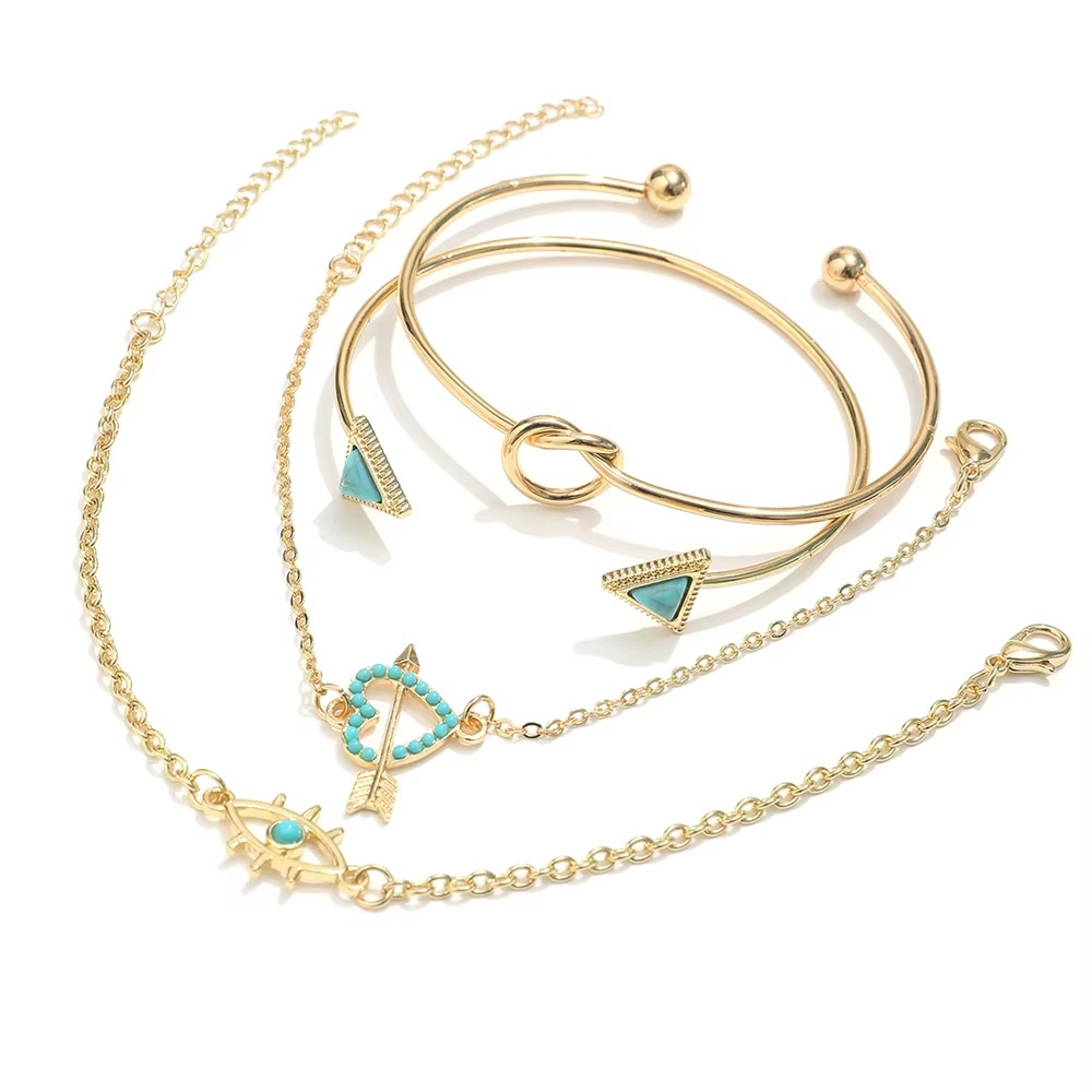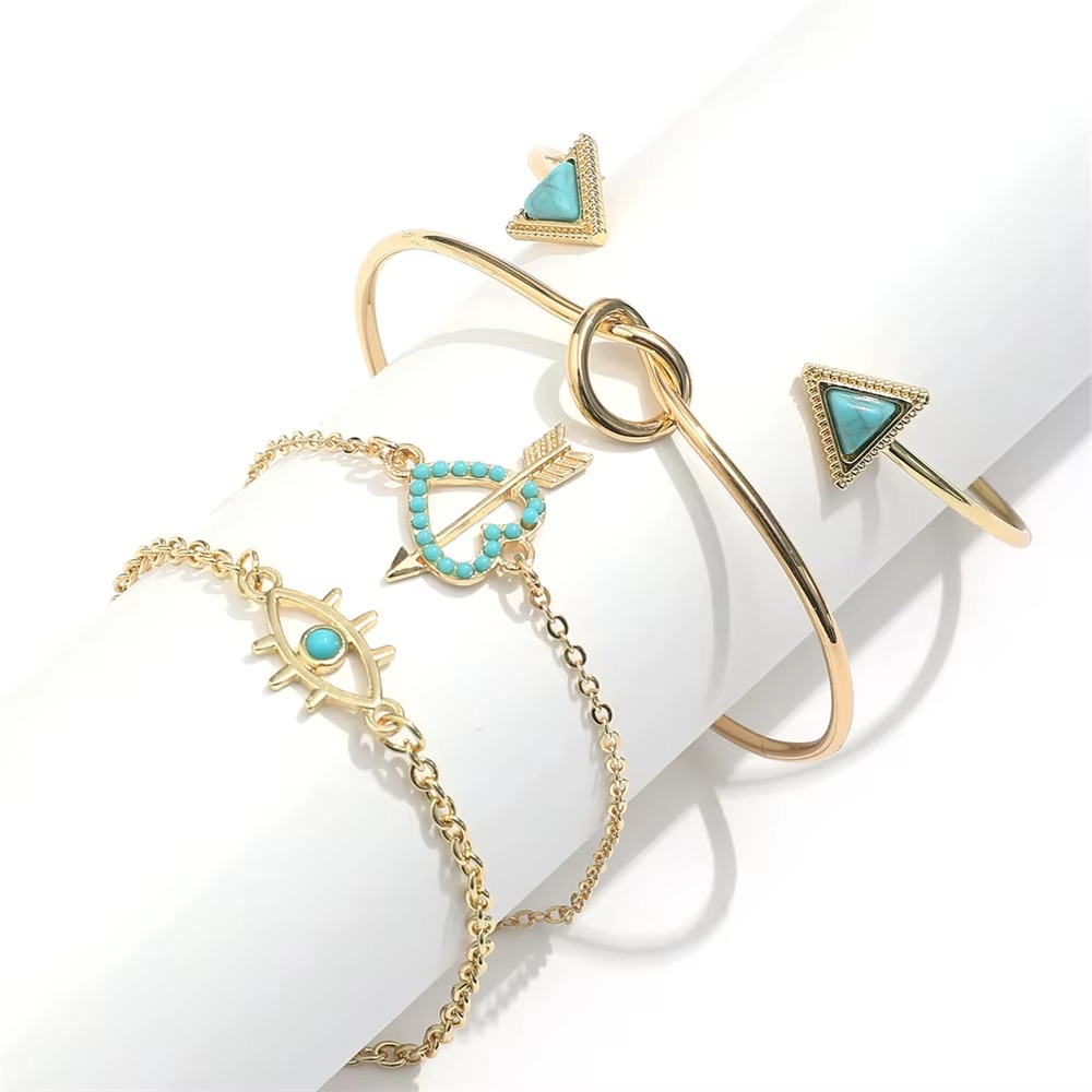 Il set Cupiè include 4 bracciali unici che uniscono l’eleganza bohémien con simboli dal significato profondo: cuori, frecce, occhi e turchesi. Ogni elemento è scelto per trasmettere libertà, amore e protezione, ideali per chi ama esprimersi con stile.